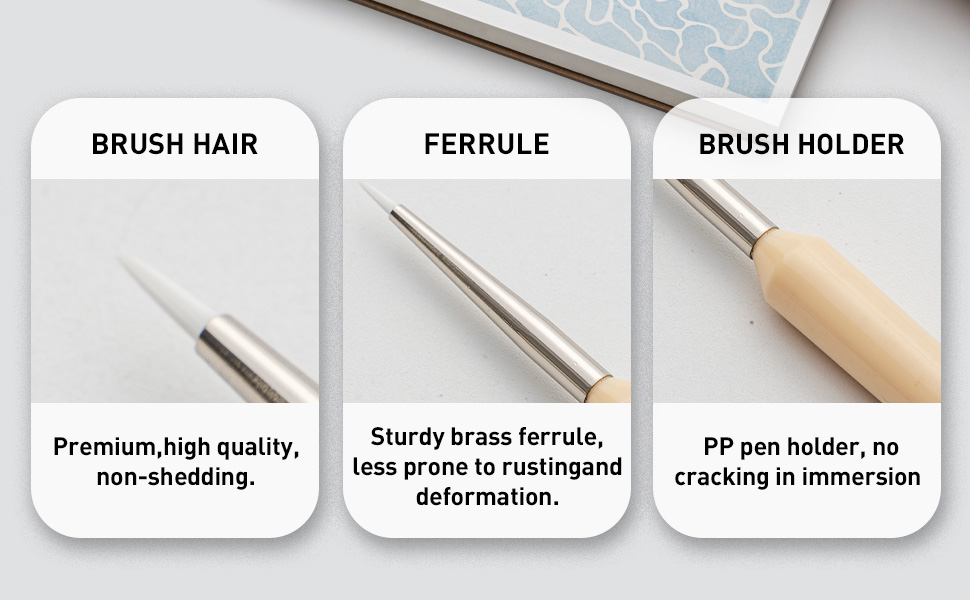 ·High Quality, White Nylon Brush Tip, Sturdy brass ferrule, PP pen holder
