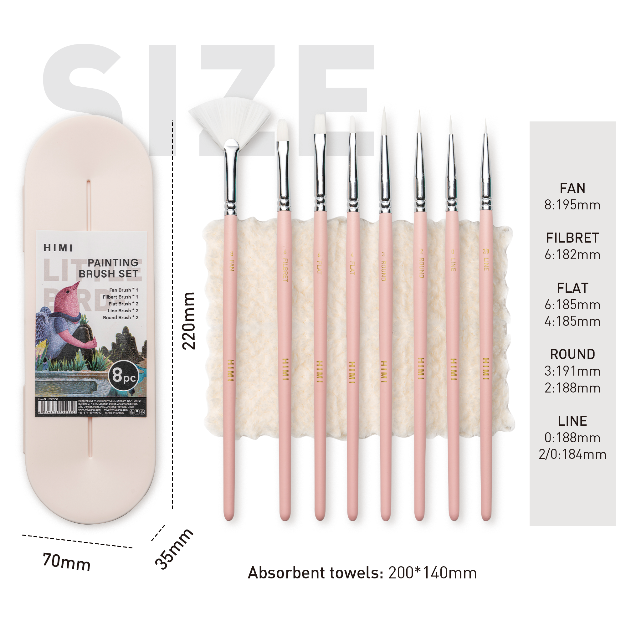 HIMI LITTLE BIRD PAINTING BRUSHES SET,8PCS,PINK