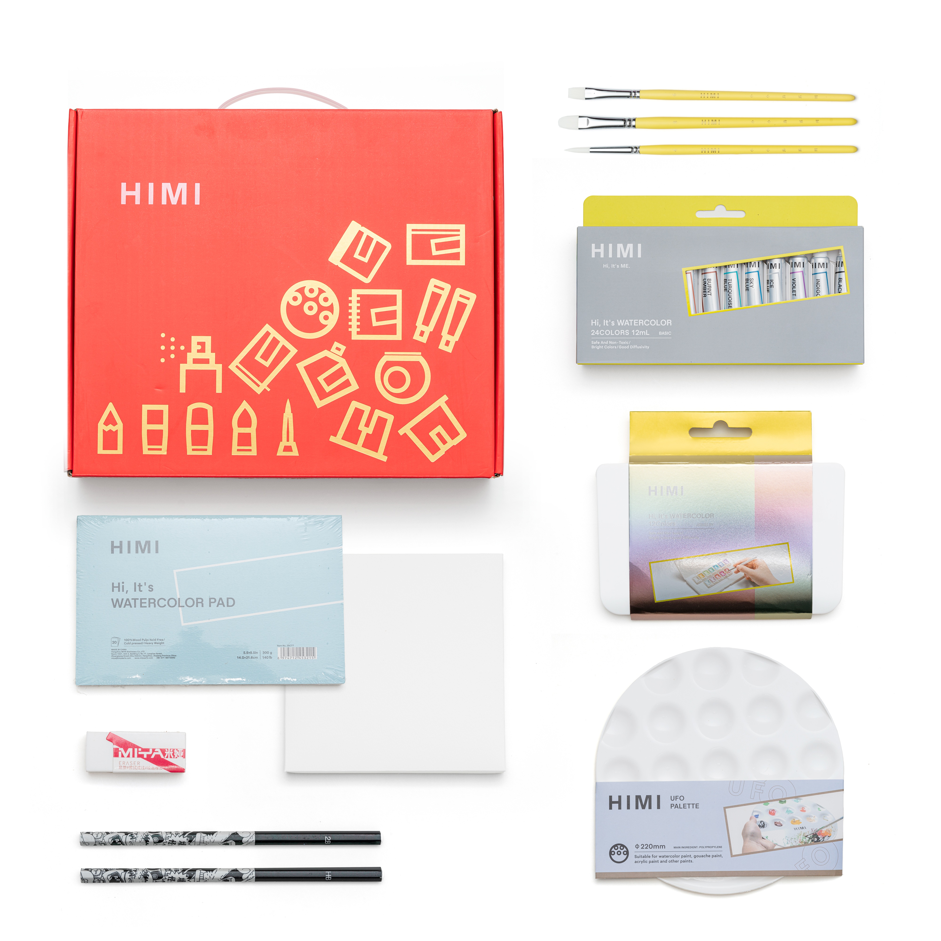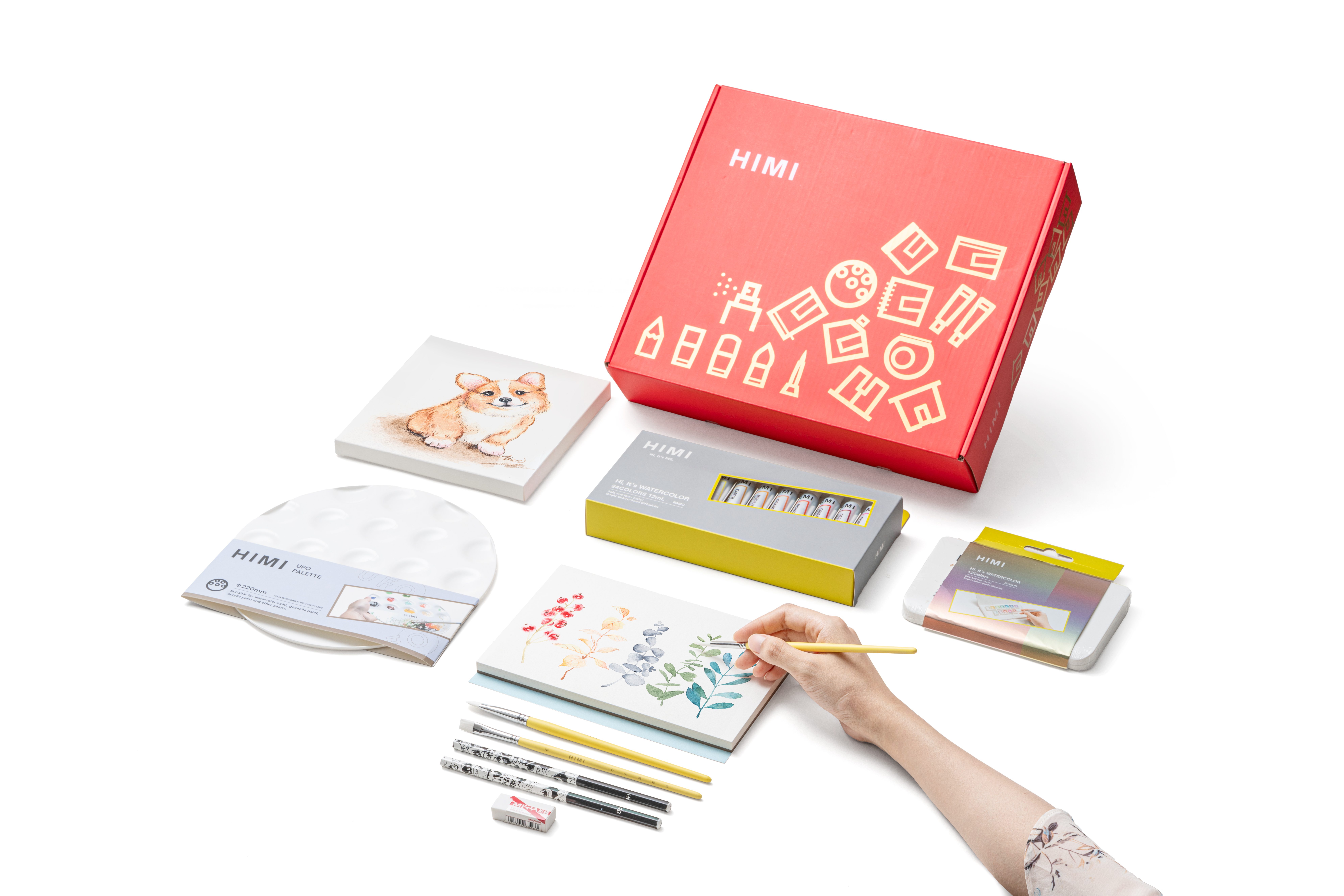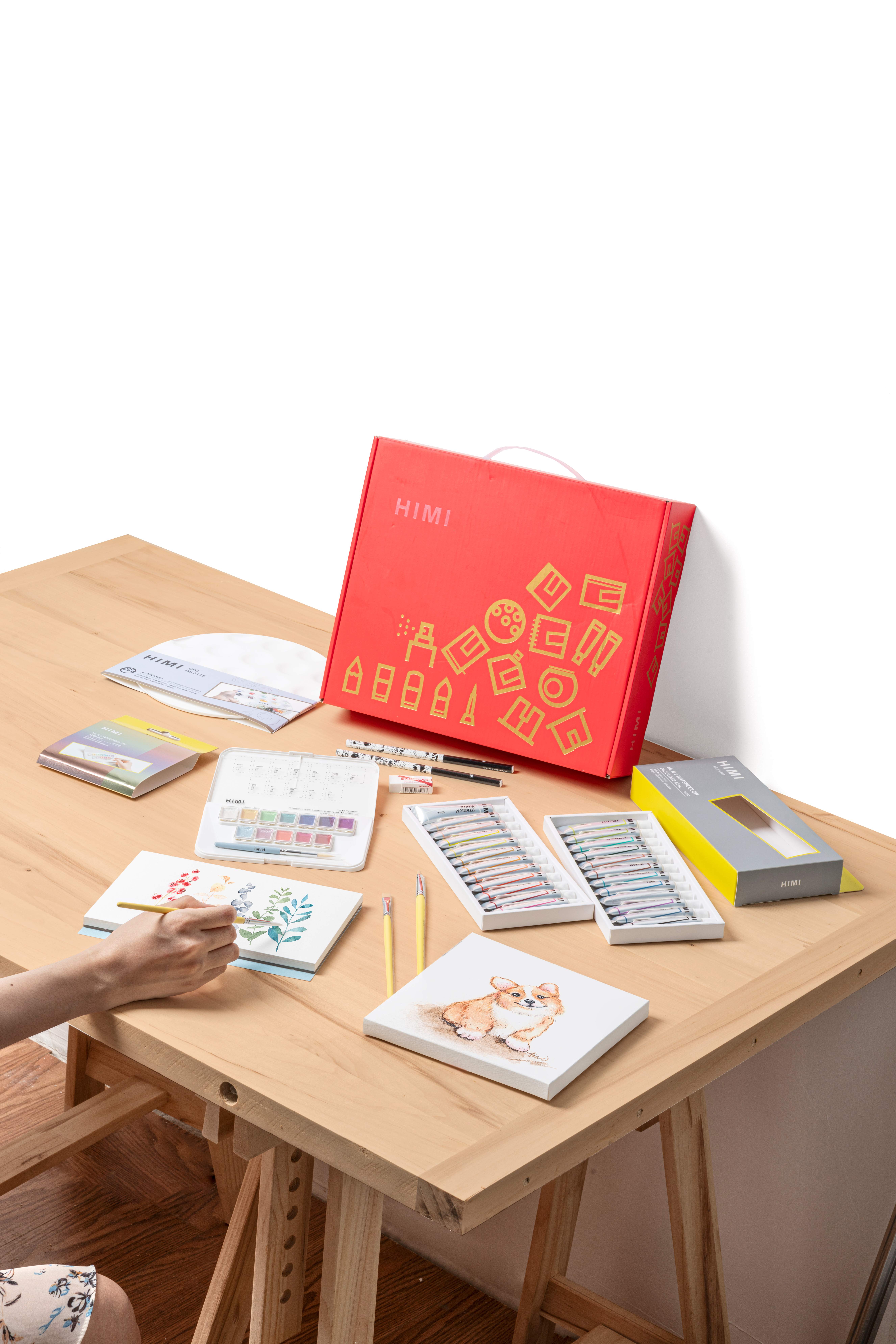 Complete Art Gift Set – includes HIMI 24 Colors Watercolor Tube Set, 12 Colors Semi-Moisture Metallic Half Pans, 3 paint brushes, 1 paper canvas, 1 mixing palette, 1 painting pad, 1 eraser, 2 pencils – a thoughtful and practical art gift.