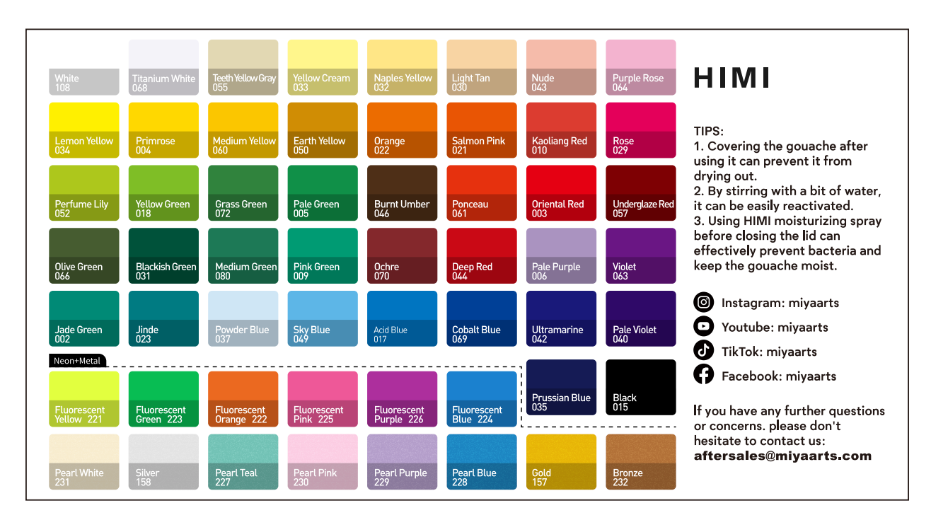 Standard Colors*42 Neon Colors*6 Metallic Colors*8