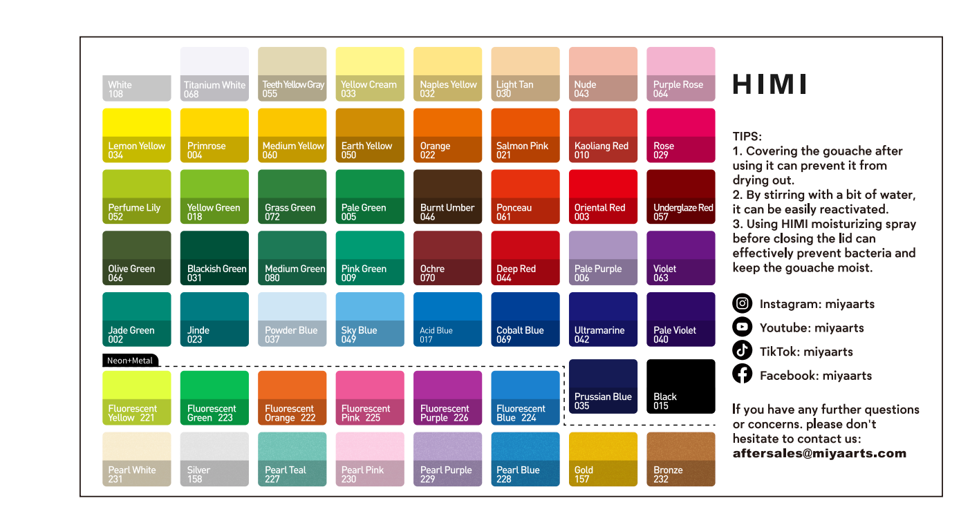 Standard Colors*42 Neon Colors*6 Metallic Colors*8