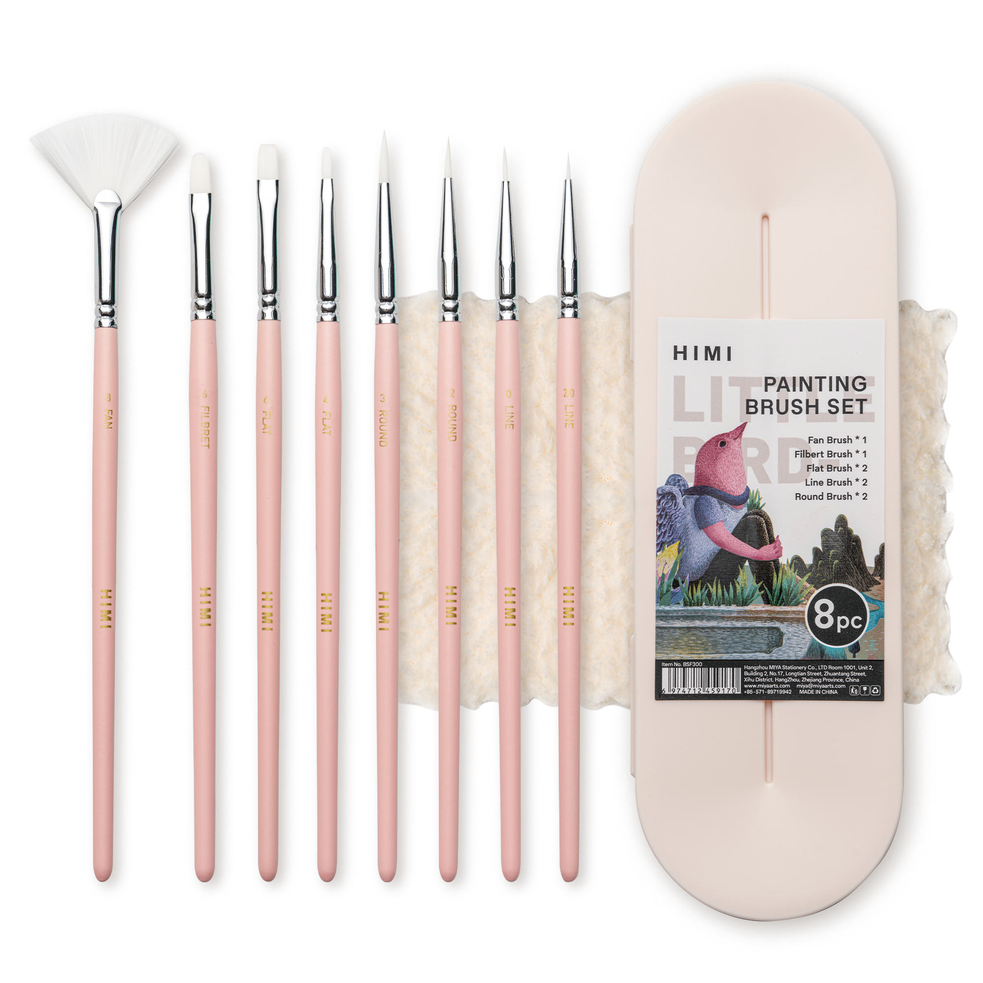 HIMI LITTLE BIRD PAINTING BRUSHES SET,8PCS,PINK