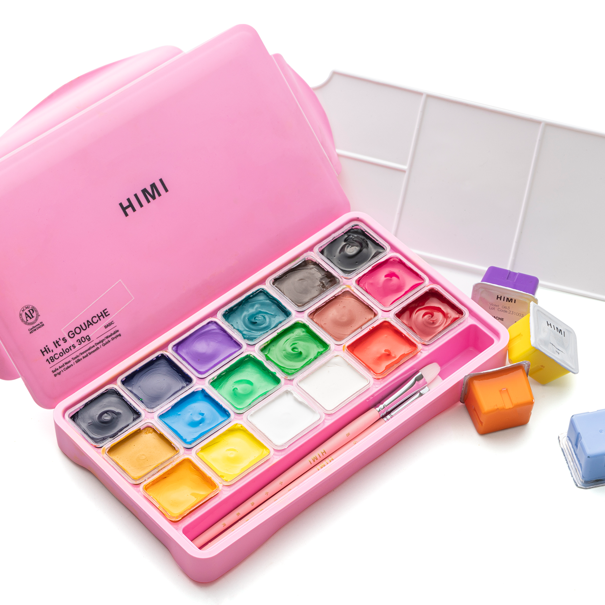HIMI GOUACHE PAINT SET, JELLY CUP, 30G/18COLORS, PINK